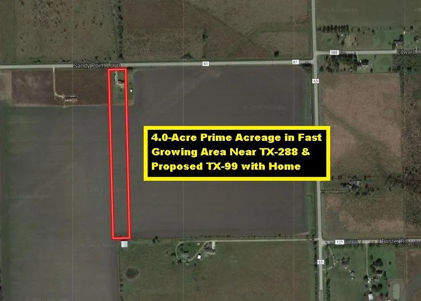 Prime Acreage in Fast Growing Area Near TX-288 & Proposed TX-99! 4.0 Acre Farm w/1620 sqft 3/2 Home & 63+ feet Road Frontage on CR 61. Home is Being Sold As-Is. Home is Being Sold As-Is. Home has well/septic, central heat & window a/c! Minutes to TX-288 provides easy commute to Hobby Airport, TX Medical Center, Houston. Proposed 4-Lane Grand Parkway/TX-99 (Houston's 3rd Loop) will span 180+ miles from League City-Rosharon-Katy-Tomball-Baytown when done (See Maps). Outside Iowa Colony City Limits, but inside the ETJ. Verify Restrictions/Exemptions. Do Not Disturb Tenant! Appointment Required!