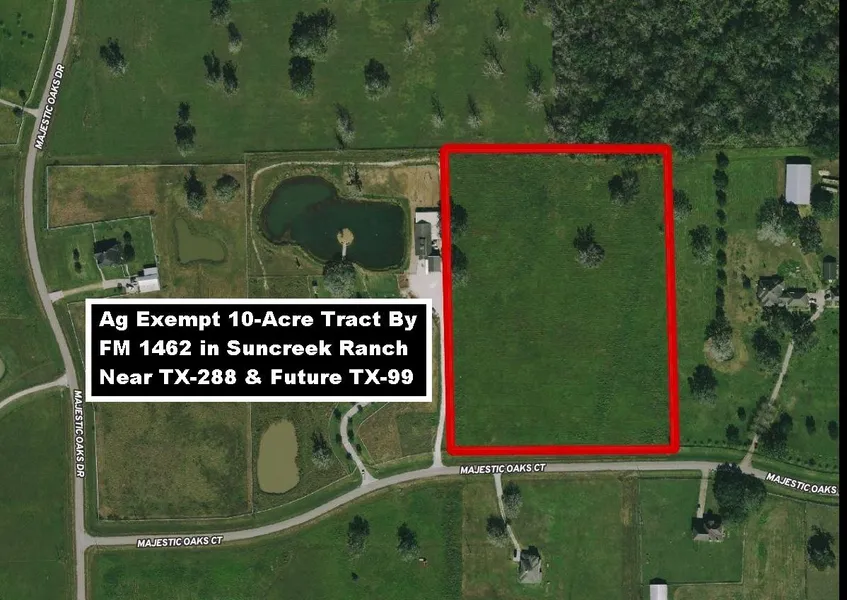 Research Parcel InformationHWY 288 from Pearland head South, Exit off FM 1462, Merge Right, Take left Majestic Oaks, then Left on Majestic Oaks Ct. Land is located on Left Side. Look for sign.