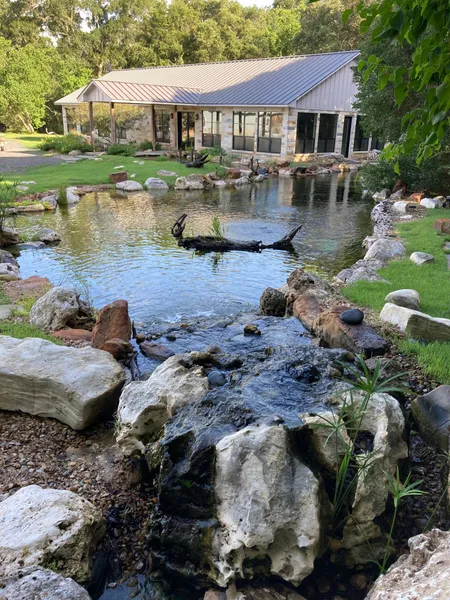Paradise so close to Houston- behind custom made entrance gates made especially for this property and 8' fencing you find this magnificently beautiful property- with some of the biggest HUGE Live Oaks you will ever see- along with just the right amount of beautiful green pastures. (Probably 80% wooded and 20% open) House & Barn are approx. 2 years new. Barn has 180' for all your equipment needs PLUS comes with air conditioned garage; bedroom, bath, & kitchen with tremendous custom built storage cabinets; feed, tool, & storage room. (Owner will leave items like tractor, shredder, mower, etc so new owner will not have to go out and buy these) What really sets this property apart is its unique water feature with 7 waterfalls, lush landscaping and 150 tons of hand selected boulders & stones. Filtration system is quite extensive! Picnic are; firepit, 32kw backup generator, 4" house well & ...