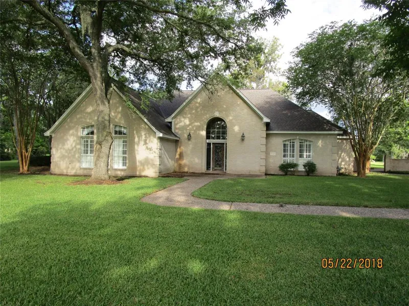 In the home the seller has left cabinets, sinks and some material that the buyer might be interested in to rebuild this beautiful home. A pole barn for your mowing equipment. Covered in ground electric fence to keep those precious pets in the yard. Sprinklers all through the yard for watering and the best shade from beautiful oak trees. Master bedroom has a sitting room off of it. Dining room off the kitchen. This home will make a great investment and all on 2.48 acres. All in a beautiful subdivision. This home had about 3 inches of water during Harvey. Seller said 1st time ever flooded. Seller removed all flooring, cabinets below and sheetrock.