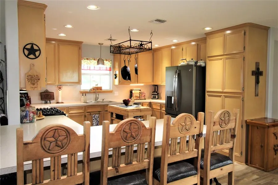 Tired of City Living, Ready For The Country! Come home to this amazing four bedroom, two bathroom, attached two car garage. Study/Office could be converted into a fifth bedroom. New HVAC system installed 2019 with solar attic vent. Roof re-shingled in 2018, level 5 porcelain tile throughout. Roman shades installed on all windows. 4yr old SS appliances, Refrigerator included. Fresh paint in main living areas. Large closets in each room. Whole house filtration and water softener is maintained through a reputable provider. Well built house, builder poured 55 concrete piers for the foundation. Large 30 x 30 shop with living quarters. Shop has separate 200 amp breaker for all your outdoor power needs. Property stayed high and dry during Harvey!