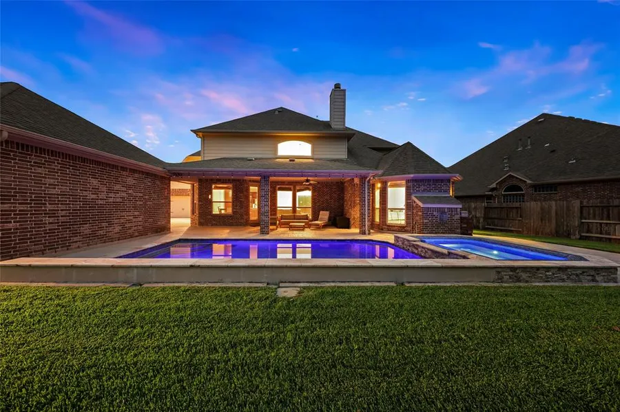 Timeless, stunning, & impressionable model-like home in highly acclaimed Sedona Lakes!The backyard is such a retreat and complete with a heated POOL w/lighting,cascading waterfall, all fenced in for extra protection,plenty of green space and easy access to lake. Plus, expansive covered patio for outdoor living is simply perfect and so private.Crafted for comfort & entertainment, this spacious home features a sensational open design w/ 4 large bedrooms & 3.5 baths & extended 3-car garages with a porte cohere entry!Home loaded w/ luxurious features & upgrades throughout: Gourmet kitchen w/sleek granite countertops, SS appliances, butlers pantry w/ wine fridge.Huge island with a high bar for additional seating.8ft doors, cast-stone fireplace, engineered wood flooring,custom window treatments and new shutters,gated driveway, & much more! Home includes a large study, very spacious bedrooms, a...