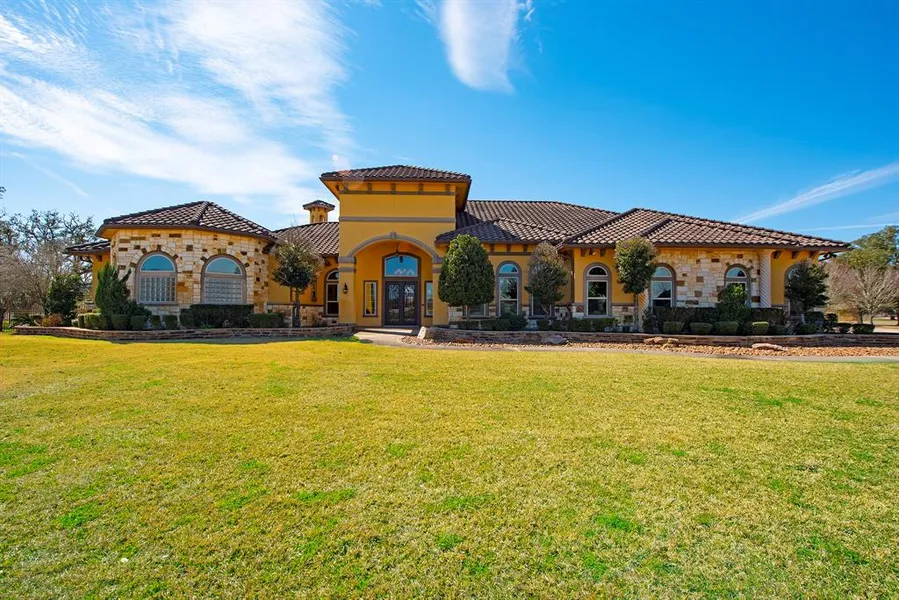 Gorgeous custom home situated on 5 acres with a resort-style pool, whole-home generator, and a casita for your guests. This luxurious home features GE Monogrammed appliances, 2 living areas, a formal dining room, wet bar, and wine room, 3 fireplaces, built-in surround sound inside & out, a fully fenced back yard with Montage commercial-grade fencing, engineered wood flooring, travertine tile, a spacious office, and a spectacular primary suite overlooking the pool. The primary bath is a spa-like retreat with a walk-through shower, a large tub, and enormous walk-in closets. This home was built for entertaining both inside and out. The main house boasts 3 large bedrooms with ensuite baths. The attached casita has a huge room that can be a bedroom, game room, or workout room. It also has a kitchenette and a gorgeous bath with a large walk-in closet. Horses welcome! Easy access to 288 and t...