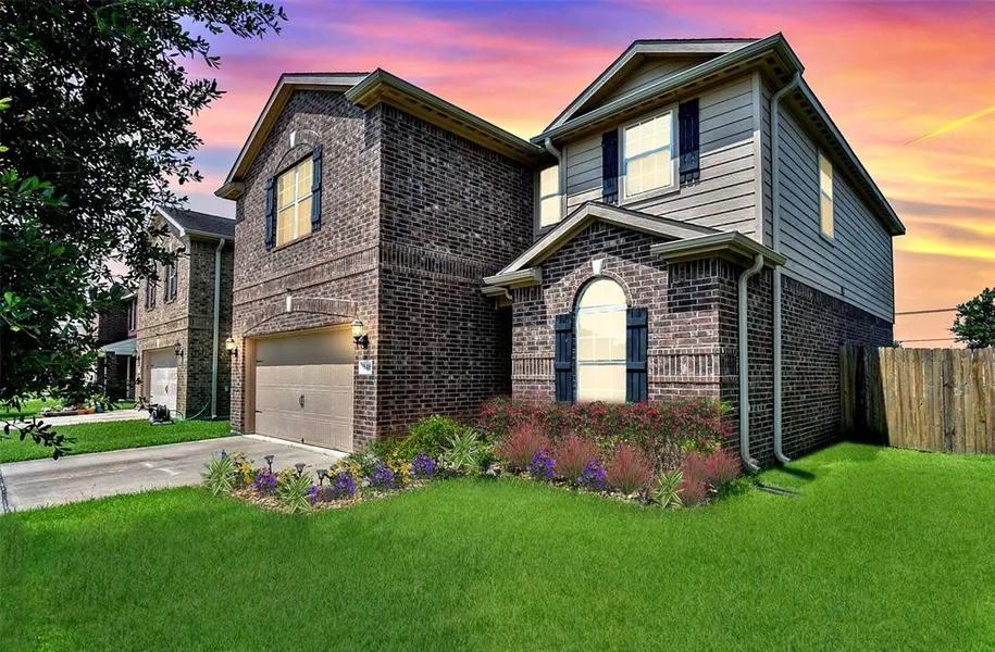 Cozy, IMMACULATE, like NEW! Two story, 5 bed, 2/1 bath home with gameroom and in the GATED section of Sterling Lakes! Open concept floorplan with a fantastic flow where the center is the living room and family and friends can easily travel into the kitchen, breakfast room, foyer and backyard. Charming kitchen with granite countertops, miles of cabinets, matching black appliances and sink area that overlooks into your light filled living room. Beautiful and durable luxury vinyl plank in the wet areas and cozy, plush carpet in the rest and relaxation areas and neutral color paint throughout for easy decorating. Tranquil backyard with additional privacy of no backyard neighbors. Sterling Lakes offers pools, playgrounds, fitness center, walking trails around glistening lakes - something for everyone! Location, location-mins from 288, 6 and the upcoming Manvel Town Center. Zoned to Alvin ISD ...
