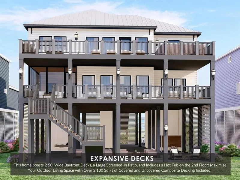 Enjoy luxurious beach and bay living at its finest in Seahorse Estates on Follet\'s Island, next to Galveston Island and one hour south of Houston. Spanning 4,500 sq ft of living space & over 2,100 sq ft of composite decking, this 6 bedroom home offers breathtaking panoramic bay front views and unobstructed 2nd row beach views, elevator, metal roof, impact windows, 2 20\' deep garages, driveway for 8+ cars, outdoor shower, easy beach and bay access, and access to private beach & bay community amenities. Entertain in style with an extra large great room with waterfront sitting area, a chef\'s kitchen with 2 refrigerators, screened-in patio, extra large game room, hot tub overlooking the bay on the 2nd floor with 4 primary suites, 2 built-in bunk rooms, 6 full baths, plus a half bath on each floor. Don\'t settle for an old beach house, build new in the Best Kept Secret on the Texas Gulf Coast & gain access to amenities like the fishing pier, kayak launch, on-site property management, & more!