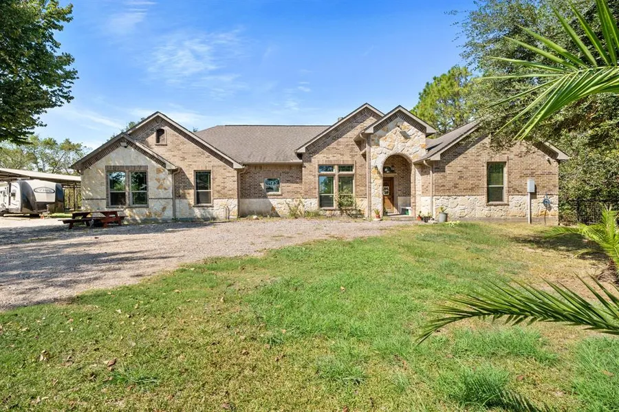 Enter the 1 Acre property thru double gate entrance. Drive up to 1-Story house with entryway to Living Room. On right side, you'll see 3 secondary bedrooms, each with it's own custom built-in closets. The 3rd bedroom has it's own bathroom that can serve as a guest room. The Living Room with fireplace, large windows, opens up to the Kitchen. Kitchen has a large Kitchen Island, breakfast bar, wine cooler, gas stove, Refrigerator; sink by the window and has granite countertops. Beautiful cabinets for storage and some with glass windows to showcase your kitchen. Family Dining area with door to backyard. House has a private covered patio for outdoor eating, cooking and fenced for privacy. There's an attached 2-Car Garage and a separate large Storage Shed for tools and equipment. House has a water well and 3 Septic Tanks in place. Backyard has great space. Zoned to Alvin ISD; near Hwy 6 for shopping centers, restaurants and easy access to Frwy 288.