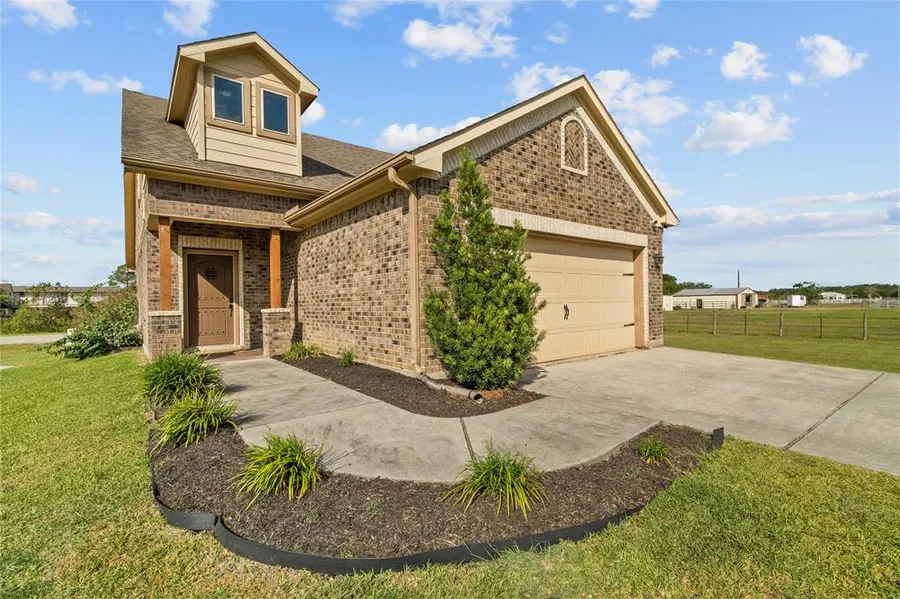 No Deed Restrictions-bring your furry friends! Plus, NO HOA, NO MUD TAX, and Low Taxes mean more savings and total freedom.Nestled in a peaceful area with great neighbors, this stunning home offers the best of country living while keeping you close to major freeways and city conveniences.Never flooded!Custom-built just a few years ago with exceptional craftsmanship, it features gorgeous custom finishes that create a warm and inviting atmosphere.The chef's dream kitchen is open to the living room, showcasing custom cabinetry, elegant granite countertops, and plenty of space for cooking and entertaining. The spacious living room is bathed in natural light ,creating a bright and airy feel. The spacious driveway easily fit 6 cars, making parking a breeze. Step outside to a large back porch and a generous yard-perfect for relaxing or hosting guests. With the foundation and plumbing already in place, adding a barndominium, guest house, or other structure is effortless. Check out video tour!!