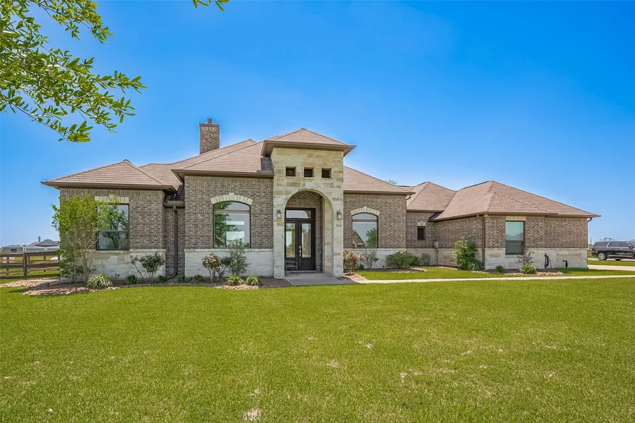 Fabulous 1 story, 1.28 acre WATERFRONT lot, offering an Open Floorplan,abundance of windows for natural lighting and views from every angle of your fabulous Lot! Living Area features High Ceilings,fireplace, opens to kitchen and Dining Area. Kitchen offers BOSCH appliances, Large island w/add'l seating, plenty of cabinet/counter space, undermount lighting, soft close cabinets/drawers. Primary Bedroom overlooks peaceful back yard space w/spa like bath w/soaking tub, separate shower, 2 vanity areas and large walk in closet, all add'l bedrooms offer ensuite bathrooms, 4 th bedroom is perfect for guest or mother in law suite, offering a full kitchette. Next to the guest suite is an add'l room w/many options, 2nd office, gameroom, living area for mother in law suite. Private Office is located at the front of the home. Your backyard OASIS offers Pool/Hot tub over looking the Lake! Garage offer...