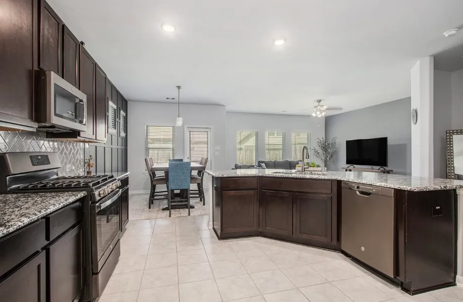Best price! Better than new! Gorgeous! Beautifully maintained with decorator paint & wall accents. Recent upgraded vinyl plank flooring in foyer, dining/study and family room. Tiled kitchen with gleaming gray granite counters. Rich wood cabinets, stainless appliances in this family friendly kitchen. Open concept floor plan makes entertaining easy between the kitchen, dining areas, and family room. The downstairs primary bedroom is spacious and bright with a large window. The primary bath has a walk-in shower, double vanity and walk-in closet. Upstairs are 2 large bedrooms with double door closets and ceiling fans. A comfortable game room/ sitting area makes a good tv or study area. Enjoy the enlarged covered patio and paved walk way to the side gate on this larger interior lot. Kids and pets will love the location to the pocket park across the street from the property. This home is ready for new homelovers!
