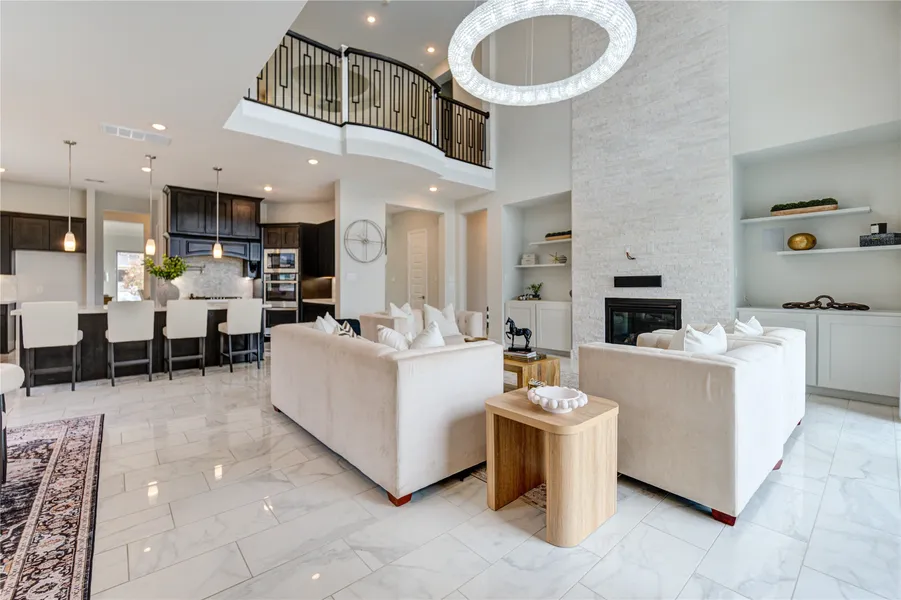 Luxury defines this 2020-built contemporary residence, perfectly positioned on a premium lot with no back neighbors for added privacy. Offering 5 bedrooms, 6 full baths, 2 half baths, and a 4-car garage, the home is designed for elevated living and entertaining. Soaring ceilings, a chef’s kitchen open to the family room, and a first-floor guest suite set the tone. The private backyard oasis features a heated pool and spa, expansive patios, and peaceful open views—your own resort-style retreat, year-round.