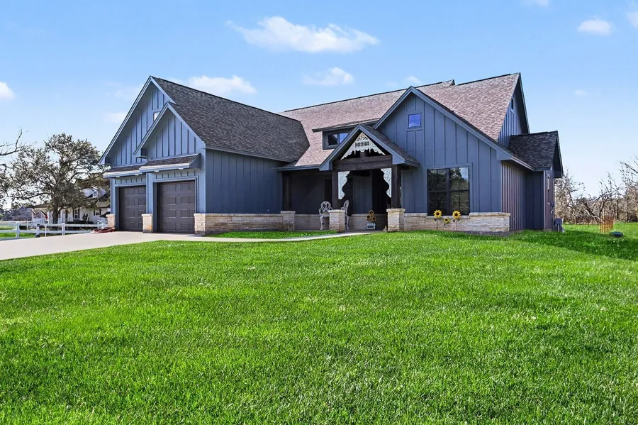 Located in the sought-after Bar X Ranch community, this custom-built 3-bedroom, 2-bath home sits on 1.12 acres and offers access to community pools, clubhouse, tennis courts, lakes, and abundant wildlife. The open-concept layout features high ceilings, spacious bedrooms, and upgraded LVP flooring throughout in this like-new home. A functional mud room with storage lockers provides everyday convenience. The kitchen is the heart of the home with a large island and bar seating overlooking the living room, perfect for entertaining. The living room features a beautiful fireplace as the focal point. The primary suite offers double sinks, generous storage, a soaking tub, and a separate walk-in shower. Multiple dining options include a formal dining room and breakfast area. Enjoy oversized covered front and back porches, ideal for relaxing, entertaining, and enjoying peaceful country living.