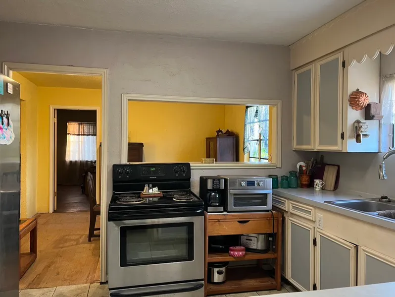 If you’re looking for just enough space to make your own, this 2 bedroom, 2 bath property is ready for renovations. Situated on 2 lots, the home offers a functional layout with a kitchen/dining combo, flex room, and an indoor utility room. Covered front porch, carport, and concrete parking. City water and sewer, central electric heat and air, with easy access to Hwy 36. Being sold AS-IS.