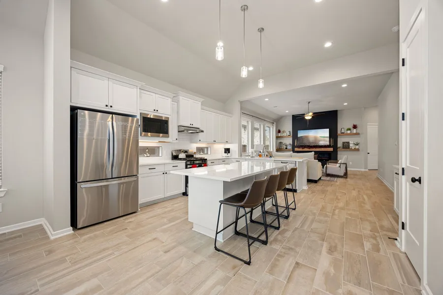 Beautiful 4-bedroom, 3-bath LAKEVIEW home in the sought-after Meridiana community. Featuring a classic four-sided brick exterior w great curb appeal, exterior lighting, & a freshly painted wrought-iron fence. Upon entry, a front bed next to a full bath is ideal for guests or a home office. The layout opens to a bright living room filled with natural light & accented by a modern fireplace, w a security system already hooked up. The open kitchen offers white cabinetry, quartz countertops, stainless steel appliances, and a large island with bar seating. The primary suite showcases serene lake views and a spa-like bath with double sinks, soaking tub, and separate shower. Additional bedrooms are spacious and versatile. Enjoy relaxing water views from the covered patio with a gas hookup, perfect for morning coffee or sunset evenings. Meridiana offers resort-style amenities including pools, fit...