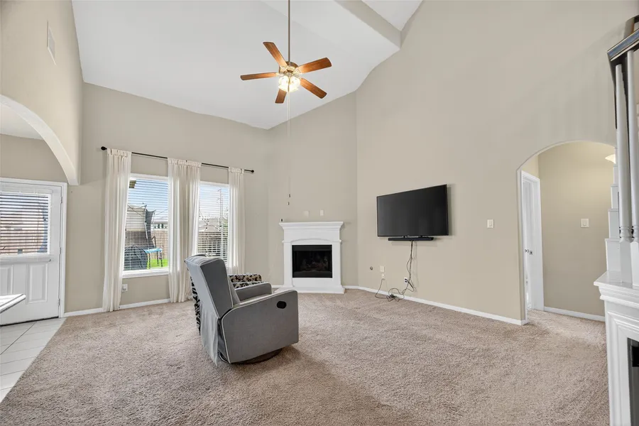 Welcome to this beautifully maintained Alvin home offering style, space, and comfort throughout. The entry opens to a formal dining room, leading into a bright living area with soaring ceilings and a cozy corner fireplace. The modern kitchen features bar seating, a breakfast nook, and a seamless flow into the dining and living spaces—perfect for everyday living and entertaining alike. The primary suite provides a relaxing retreat with dual sinks, a soaking tub, a walk-in shower, and a spacious walk-in closet.