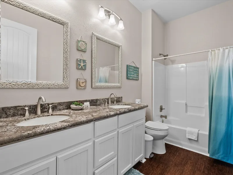 Updates are great! They include new paint and shutters the roof and more!! Please look at the 3D Tour for a good look at this home. 1922 Blue Water is snuggled off a private drive on the beachside of Blue Water Hwy. The owner is deeded access to the beach through a beachfront property to the west of the subdivision. The fenced lot is large and has room under for storage, a hot tub, and shower. Upstairs the deck looks to the east with views of the Gulf. The door opens to the open living room/dining/kitchen area. To the right is a hall with a bedroom to the left and a hall bath to the right. Just past this first bedroom to the rear is another bedroom with a private bathroom. The hall turns to the right and the utility room is to the left, and a primary bedroom with a private bathroom just past the utility room and across the hall, the fourth bedroom and private bathroom is on the right. Beautiful custom finishes and furnishings throughout, make this turnkey rental, perfect.