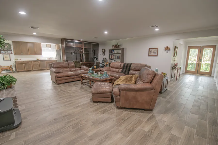 Welcome to this stunning 4 bed, 3.5 bath home on over 3 acres in Alvin, Texas! Boasting 3,200+ sq ft, this beautifully remodeled gem features a brand-new kitchen with new appliances, wood-like flooring, and a large laundry room with sink and half bath. The open-concept living room includes a wood-burning fireplace and custom-built display case honoring its first owner, Nolan Ryan. Enjoy formal dining, a formal den, and a sunroom perfect for relaxing. Recent updates include a new roof, AC, water heater, PEX plumbing, and appliances. The backyard offers large oak trees, a patio, fenced yard, and a spacious shop with 2 awnings—great for storage or workspace. A double-wide driveway and extra parking provide room for all your vehicles and equipment. Modern comfort meets timeless charm in this incredible property—don’t miss it!