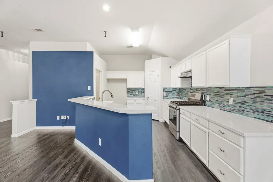 Welcome to this beautifully maintained home that offers perfect blends of comfort, charm, and modern style. Enjoy lush landscaping and great curb appeal, darker luxury vinyl flooring, and high ceilings with elegant architectural curves. When you enter, the two secondary bedrooms and bath are thoughtfully located to the right, while the primary bedroom offers privacy at the back of the home. The updated kitchen features solid countertops and a stunning backsplash with a variety of blue tones, creating a fresh and inviting atmosphere.