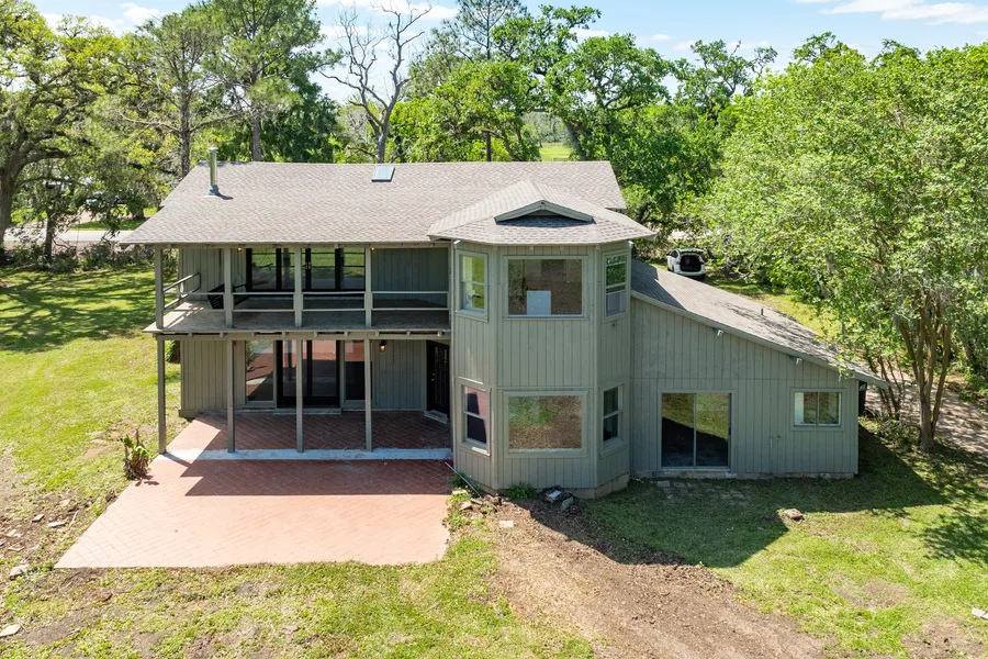 WELCOME to your private retreat on 5 beautiful acres! This 4,271 sq ft home offers 4 bedrooms, 3 baths, and 2 spacious living areas. Thoughtfully updated by Master Touch, the island kitchen features granite counters, wood and beam ceiling, recent appliances, and a breakfast room that opens to a light-filled dining/family room with high wood-beam ceilings and access to a covered brick patio- perfect for relaxing or entertaining. The main level also has a large living room with wood laminate flooring and a cozy fireplace, a primary bedroom with ensuite, two additional bedrooms and a full hall bath. Upstairs you'll find a second private suite with a huge walk-in closet- ideal as a second primary or a game room- with access to a balcony overlooking the peaceful acreage. With its blend of warmth, style, and flexible living space, this home is ready for your next chapter. Call Today!