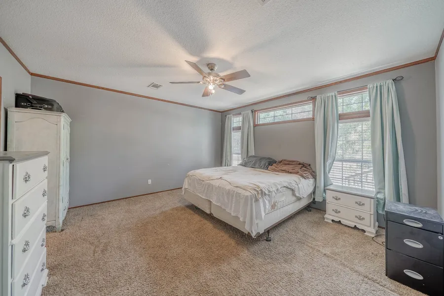 Country living with secluded feel yet still close to town! Set on 1/3 acre this cute 4 bedroom home has a great floor plan featuring spacious family room open to updated kitchen with double oven and large island work center with storage cabinets & breakfast area-both have pretty wood plank vinyl flooring... Split bedroom plan the primary bedroom & bath offer wood plank vinyl flooring, double sink vanity, huge walk in closet, oversized garden tub & separate shower. All secondary bedrooms are a nice size as well! Cute front porch overlooks your nicely cleared yet wooded property. This home is adjacent to four beautiful lots (1.28 addtl acres) also for sale at MLS#91093936! You can live on that property while you build your dream home! Super LOW tax rate, NO HOA and no restrictions! Call today for a private tour and more information!