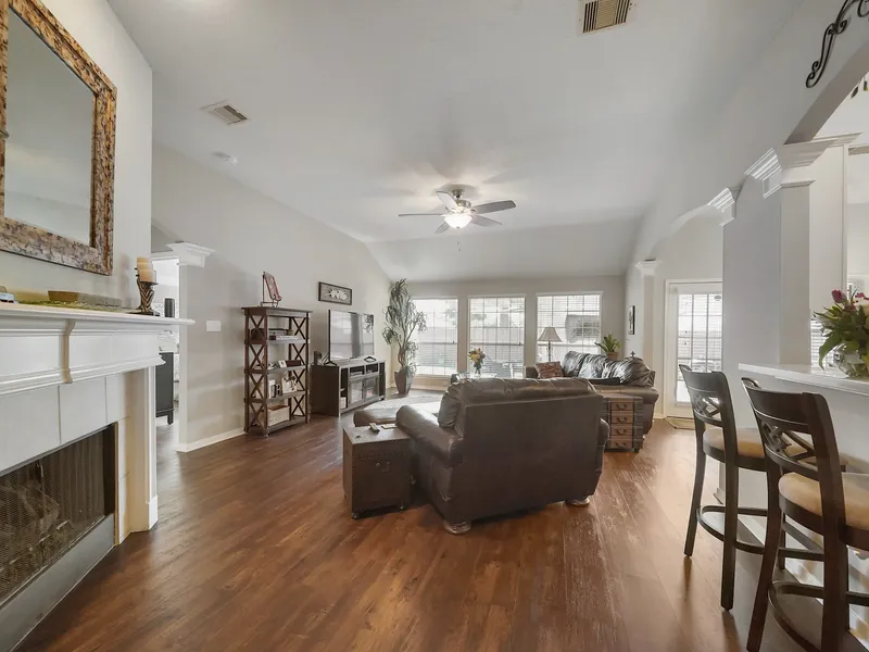 Beautiful One Story ready for new owners. The sellers have meticulously maintained this lovely home. With recent updates including, Roof, AC and Luxury Vinyl Wood Flooring through out, perfect for allergy suffers, pet owners, children or just the ease of maintenance. High ceilings, split floorplan, formal dining, private office space with french doors, large living, no rear neighbors allows privacy to enjoy the oversized patio space for entertaining or family nights in. Kitchen has great counter and cabinet space and is convenient to Dining, Breakfast and open to Living. Primary Bedroom is tucked away in the rear of the home for peace and quiet. Great walk in closet and primary bath with duel sinks and separate shower. Home has great natural light without direct heat. Call your Realtor today to schedule a showing.