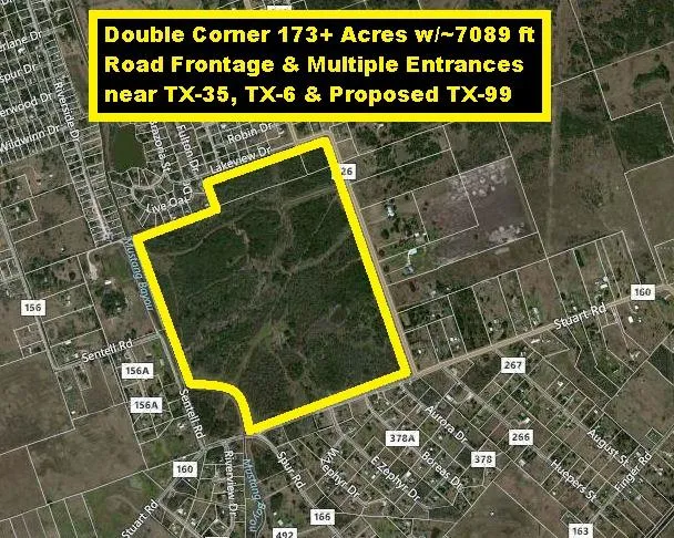 Price Drop! Prime Development for Small Acreage Lots Per City of Alvin! See Docs for Possible Schematic of Lot Layout for Residential Development! Double Corner 173+ Acres w/~7089 ft Road Frontage near TX-35, TX-6 & Proposed Grand Pkwy/TX-99. Minutes to Alvin Schools, Community College, Sports Complex, Skate Park, Pool/Spray Park & Dog Park. 40 miles to Hobby Airport, Galveston Beach, Freeport, Houston Downtown & TX Medical Center via TX-35, I-45 & TX-288. Appointment Required Due to Cattle! Alvin ETJ! AG Exempt! Well & Septic Need to Be Installed! Owner Financing Available! See Restrictions in Docs & View Drone Video! Horses Ok! Also Available Subdivided into 30 & 40 Acres! Contact Capital Farm Credit for Loan!