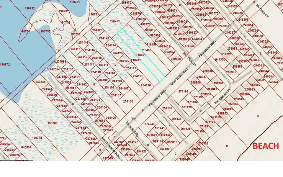 .5 Acre off Blue Water Hwy. There is nearby new construction as well as access across the street to the beach. This lot has views of the middle beach in Surfside Beach and views of the bay. Other homes were built with decks on both sides. Endless sunrises and sunsets. The lot is 50'. It will need the new owner to tie into the Village of Surfside Beach water system and put in a private septic system. There is so much room to enjoy being outside and entertaining family and guests. Come see if this is the lot you have been wanting.