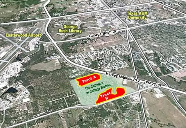 These prime development tracts are in close proximity to the George Bush Presidential Library and the Texas A&M West Campus. The property offers outstanding potential for development. Adjacent to the nationally recognized multi-family student housing projects: 2818 Beach Club and Capstone's "the Cottages at College Station, the properties offer multi-family zoning, bus service and buffers from roadway.