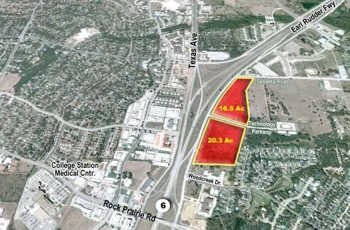 The two tracts are ideally positioned on Earl Rudder Freeway South at Hwy 6. They offer outstanding potential for a variety of development ventures.