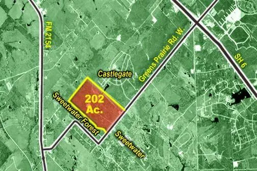 202 Acres on Greens Prairie Road adjacent to Castlegate, Sweetwater and Sweetwater Forest Subdivisions. This property is directly in the path of the College Station development corridor.