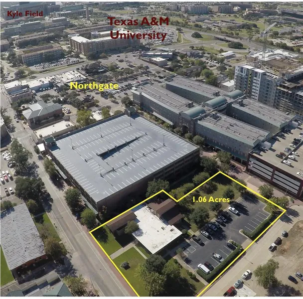 1.06 acre Northagte development site available for ground lease. Site well suited for student housing or hotel user. Regional tenant will pre-lease 6,000 sf of 1st floor space at market rent. Site adjacent to City of College Station Northgate Parking Garage with possible spaces available for user. Planned Zoning is highly desirable Northgate District NG-l, that does not require parking. Walking distance from Texas A&M University and the world famous Dixie Chicken. $7.00 SF/YR ground lease.