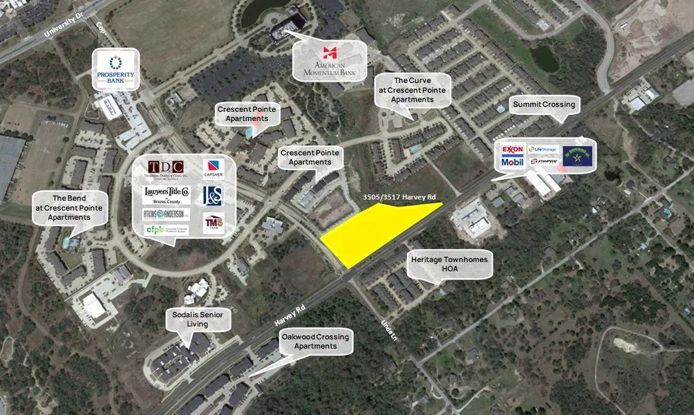 Do not miss a chance to purchase this centrally located hard corner on HWY 30/ Harvey Rd in College Station. The property is in a prime location, close to HWY 6, Veterans Park and increasing residential and commercial development. Excellent visibility with over 600 feet of frontage on HWY 30/Harvey Rd. Curb cuts on Harvey Rd and on Copperfield. Easy excess to east and west bound traffic. These are two Parcells of land- 3505 Harvey is 1.517 acres and 3517 Harvey Rd is 1.958 acres. Survey is attached. This area is few short miles away from Texas A&M University, shopping, and retail. All Utilities are in place. Seller has plans for gas station and retail drawn up. Brand name gas company willing to give a huge rebate. Impact fee already paid to the City of College Station and building permit in place. Primed and ready for development.