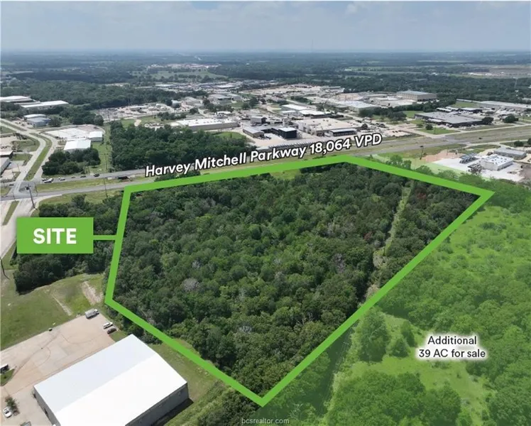 13.71 acres of land with over 700’+ of frontage on Harvey Mitchell Pkwy. According to TXDOT, traffic counts are over 18,000 vehicles per day. Water, power, and sewer are available in the immediate area, Bryan Texas Utilities. Currently zoned Agricultural Open with a Future Land Use as Commercial per the City of Bryan. Adjacent 39 acres are also available For Sale. A portion of the property is located in the 100-year floodplain.