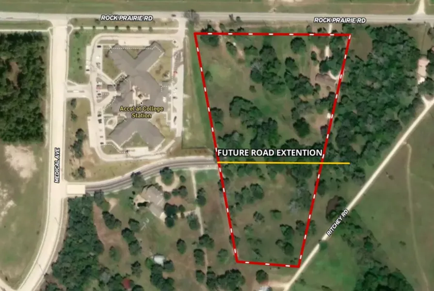 This tract is an ideal location, almost adjacent to the Baylor Scott and White Hospital campus, with Accel Rehabilitation and Midtown City Center on its borders. The frontage on Rock Prairie has recently been widened to a 4-lane boulevard with large sidewalks connecting into the hospital campus. All needed accessory uses are in very close proximity, which include grocery, medical, retail, restaurant, and convenience stores. The property is currently zoned Ag, but we believe the potential entitlements include medical, office, general commercial, or multifamily. (to be negotiated with the city) Utilities are available.