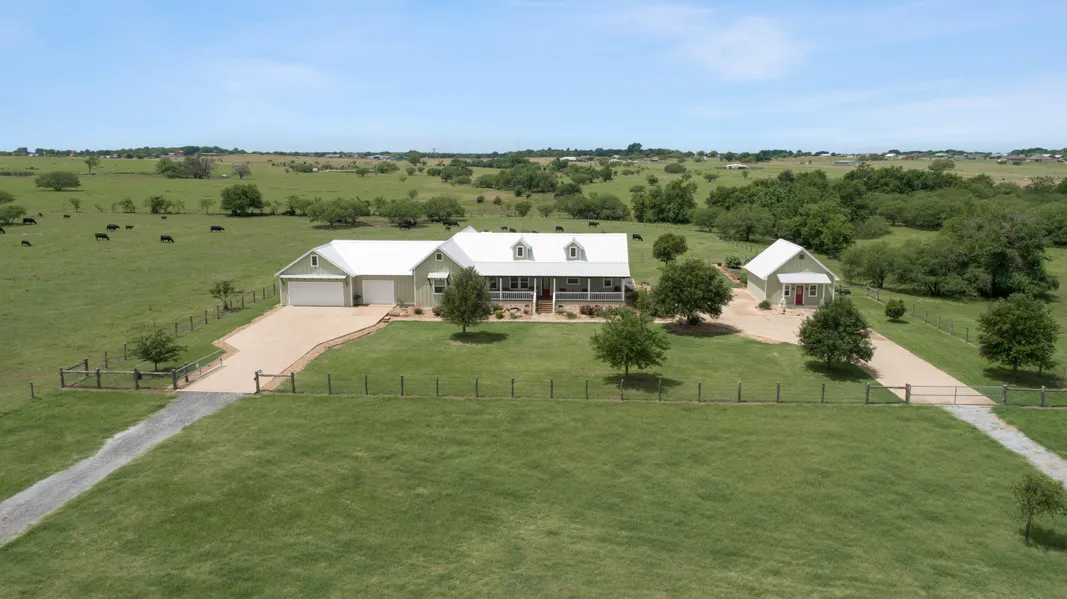 What a location!! Impeccably built farmhouse on 92+ acres only 2 miles from Highway 6 and 10 miles to Texas A&M University. Timeless style awaits inside main house featuring shiplap walls, pine floors, and amazing chef's kitchen with many custom features! Enjoy amazing sunset views from the back porch featuring rock fireplace and cedar planking. 720 sqft 1BR/1BA bunkhouse for additional guests. Surface water includes 25 ft deep stocked pond with deck for fishing and Little Wickson Creek begins on property. Fertile sandy loam pastures have been improved with Tifton 85 bermudagrass. New perimeter fencing and 5 cross fenced pastures. Barn with working cattle pens and shop with roll up doors.