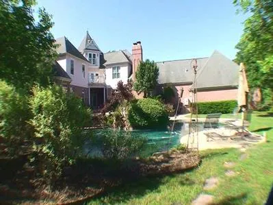 The opposite walls feature beautiful windows and provide a view of the Cabana Area and the tranquility of huge trees and a second floor Veranda. This setting uniquely entwines the woods with the interior of the Estate Home!