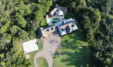 Breathtaking Country lifestyle living home rests atop 11.92 wooded acres, and overlooks a large custom designed stocked pond with island. 4,641 SF main home boasts an open 4/4 floor plan with custom knotty pine built-ins and cabinetry with granite throughout. Living has rock accents with built in bar and cabinets. This premier rock home is an entertainers dream with a backyard featuring a 1500 SF game room with theater, outdoor kitchen, swimming pool, and half- basketball court with lighting. Also, home features a two bedroom and game room finished living space above oversized garage, and a separate guest home near the pond. Home is wired for: Security System, Cat5, Smart Home Capability, and, includes an 8 Camera Security System. This premier home is a must see.