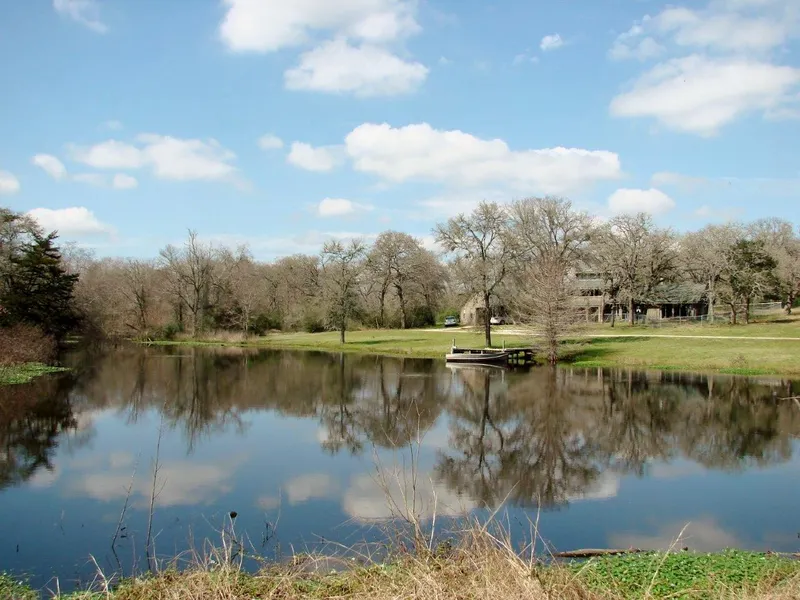 Gorgeous 13.88 acres approx. seven minutes from TAMU, one mile south of FM 60/University Drive, but feels like a private retreat! Wooded, gentle terrain slopes down to the large, stocked pond. Excellent locale for bird and wildlife watching, fishing, and entertaining. Unique 2-story custom home. Bright, open, large windows, natural light with master bedroom and office. Would make a great home for the right buyer. Alternatively could be utilized as a family or game day retreat, home-business, art studio, etc. Separate building features an apartment with loft, kitchenette, & bath. Remainder is workshop/storage and carport. Ample land for a new home, while utilizing existing improvements.