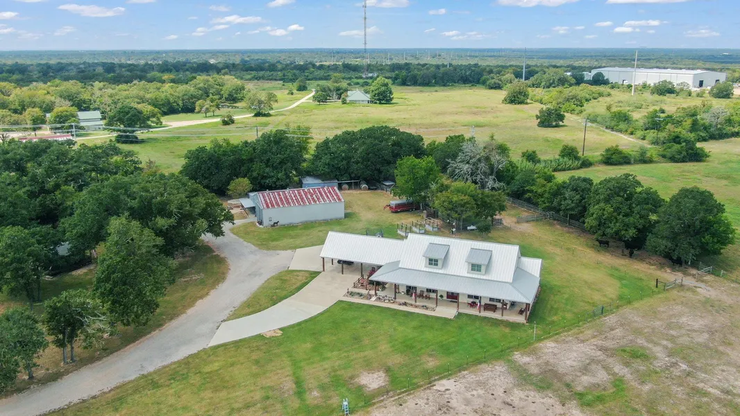 Discover a rare gem in this stunning country property! This modern farmhouse features ship-lap walls in the living areas and owners suite, white oak floors, an open floor plan, a chefs kitchen, island and eating bar, and a fireplace with limestone surround. A wraparound porch overlooking the adjacent pasture adds country charm, far enough from FM 2154 to enjoy the tranquility. A concealed stairway to the foam insulated attic provides climate-controlled storage. Also included are an enclosed outdoor shower, storage room, a dual porte cochere, and concrete for ease of parking. A separate cabin can be utilized for overflow guests or even a game day rental. It is over 400 sf with a cozy feel and an oak tree shaded front porch to kick back and relax. Additional leisure and entertainment capability is included in the 3900 sf multi-purpose barn, including a recreation room, with pool table, TV wiring, extensive seating, air conditioning and heat, and a kegerator to provide for the owner and guests. For evenings, there is a covered front and fire pit for Smores or roasting hot dogs. There is also a fully wired tool room with work benches and a rollup door. The main barn has room for tractors, four wheelers, etc., and shelving for additional storage and workspace. There is another barn for storage of supplies and small equipment. Livestock pens are part of the property. This +/-5 ac., with access to Wellborn Road, is 17 minutes to Kyle Field. Call today to see!
