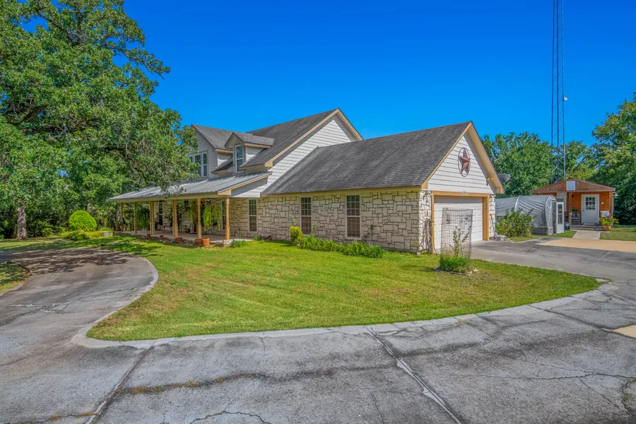 Welcome to 209 Ranchette, a 2.66-acre tree-covered retreat offering the perfect blend of country charm and modern efficiency.This impressive 2,698 sqft home is set back with a concrete circle drive, creating both convenience and curb appeal. With its stone exterior siding and full-length front and back porches, the home invites you to enjoy peaceful mornings and relaxing evenings in a serene setting. Inside, the layout provides a comfortable balance of open gathering spaces and private retreats. The home includes three spacious bedrooms, two and a half bathrooms, a dedicated office, and a formal dining room. At the heart of the home, the kitchen features a large island, farmhouse sink, granite countertops, and stainless steel appliances—perfect for everyday living and entertaining alike. The adjoining living areas flow easily, creating a warm and welcoming atmosphere. Built by Energy Wise Structures, this home is designed with fully foamed insulation for superior efficiency and remarkably low utility costs. Additional features include whole-house surge protection and a two-car attached garage. A versatile 600 sqft. Graceland building with HVAC and sink provides an ideal space for a home office, hobby room, or studio. Surrounded by mature trees, the property offers both shade and privacy, while leaving open areas for gardening, recreation, or future expansion. This home combines the tranquility of country living with modern amenities, offering space, comfort, and flexibility.
