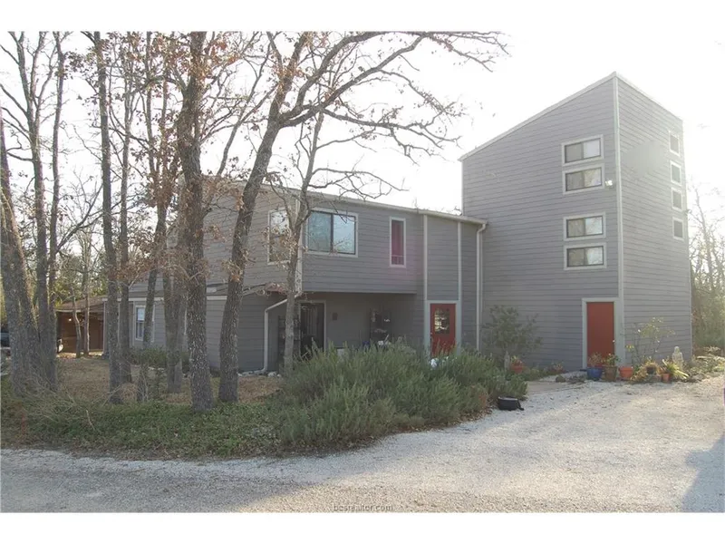 Contemporary style home on 1 acre just outside the city limits. Less than 10 minutes from TAMU, public schools, shopping, and the new Jones Crossing development which includes an HEB and other amenities. Well maintained, it has mostly tiled and wood floors . Special features include a separate dwelling 2 bedrooms 1 1/2 baths that can be used for family members, or rented out for ball games and other events. Main house 3 bedroom, 2 bath with a loft area in Master, 2 living areas. Additional features are a fenced section for gardening, a work shop, and storage everywhere. 2 driveways, one with covered parking and storage. ***Investment Opportunity*****