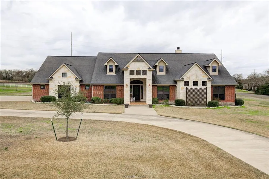 Make a statement with this home! Grand entry leads to an open living area with soaring ceilings, beams and a rock fireplace! Kitchen offers stainless appliances, granite counters, gas cooking and a spacious walk in pantry! Master suite has a jetted tub, walk in shower, and his and her vanities. Bedrooms 2 and 3 have a Jack and Jill bath. Bedroom 4, located upstairs, has a full bath at the base of the stairs. There is also a separate office with built-in shelves for your books or collections. A guest suite off the garage is complemented with a kitchenette, full bath, including a jetted tub and its own access to the covered patio. 3 car garage has dedicated 220 plug, work and freezer space. Price improved and ready for move in!