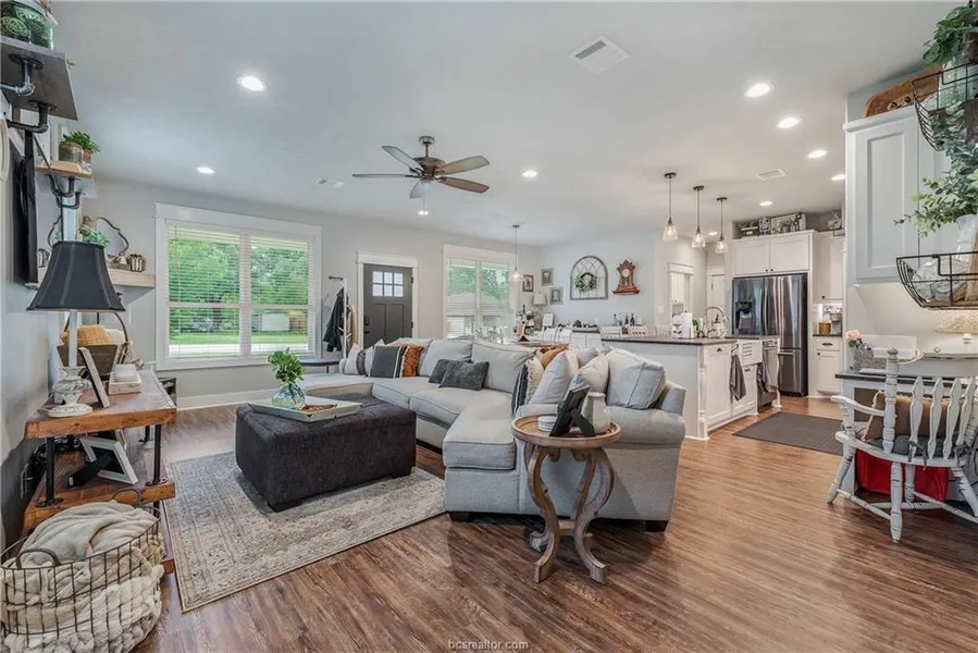 Call this precious home yours! Great curb appeal and it sits on one of the largest lots in the neighborhood. Enjoy sitting on the large covered front porch, and enjoy the early mornings and evenings. This immaculate 3 bed/2.5 bath/2,136 SQFT home has an open concept floorplan with a large island with a farm sink, all stainless appliances, a walk-in pantry, beautiful granite countertops, and has built-ins for extra counter space and cabinets. Spacious laundry room. The oversized master has a custom barn door to the master bath. Don't miss the huge Bonus room that could be used for gameroom, home theater, or could be converted to an extra bedroom. There are two bedrooms upstairs with walk-in closets and a large bathroom. Extra recessed lighting throughout the home with dimers. There is 1 gas feature added in the living room. The large backyard is fenced. Must see!