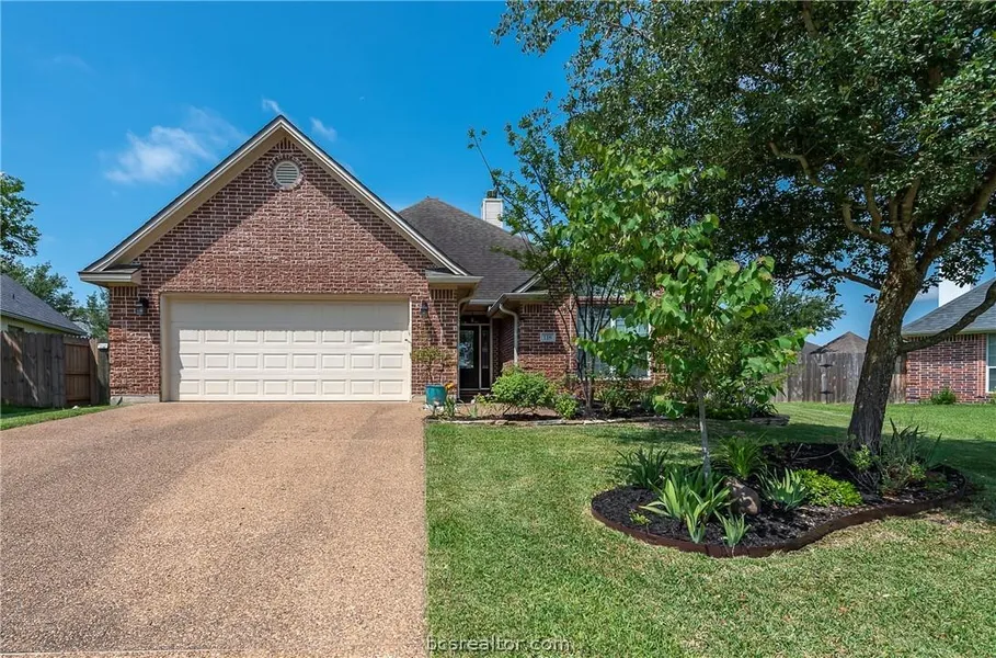 Come check out this lovely home in South College Station. Single story, four sided brick home with gorgeous curb appeal and extravagant landscaping, this home features a split bedroom floor plan with 3 large bedrooms and 2 bathrooms. The spacious living room includes built-in cabinets and wood flooring, and a gas started fire place. The kitchen features granite counters, stainless appliances, pantry, and custom cabinets. The spacious primary bedroom features large closets, with double vanities, large soaking tub, and separate shower. You'll enjoy the oversized backyard that includes a screened in porch, extensive landscaping and nestled on a partial culdesac, this home is sure to check all your boxes. Feeding into the awarding winning College Station Schools, don't miss the opportunity to view this home today! Bonus** Brand new HVAC being put in 6/30/2022.