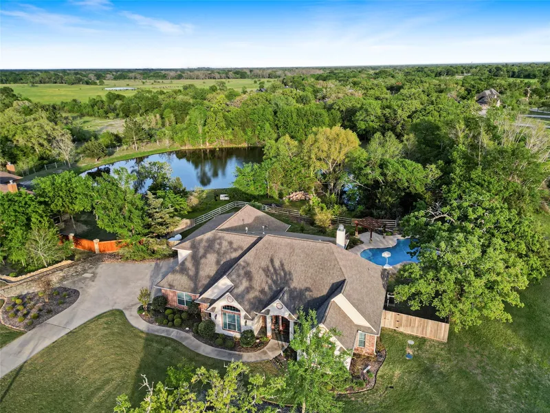 Stunning custom stone and brick home situated on over an acre. This home is a rare find as it shares ownership in the pond which can be seen from the backyard. There is something for everyone featuring an expansive game room that is large enough to double as a media area. Notice the high-end features like plantation shutters, crown molding, bose speaker system inside and out, large garage doors to accommodate trucks, walk-in closets with built-ins, and decking in the attic. An entertainer's dream with a large open floor plan, elegant brick fireplace, huge kitchen with a large island, and an abundance of cabinet and counter space. Notable items are the tankless water heater, large primary suite with freestanding tub, amazing walk-in tile shower, and a huge walk-in closet!! Year-round entertainment can continue out back with the covered back patio plumbed for grill, view of the private pond, firepit, lush landscaping, pergola, pool with a hot tub, and an outdoor building.