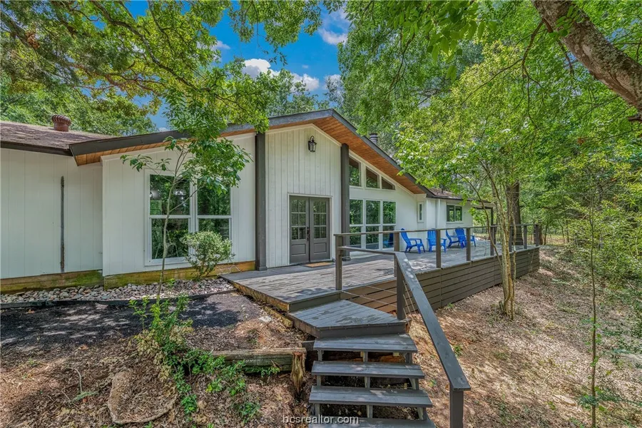 ONCE IN A LIFETIME OPPORTUNITY to own this unique, newly remodeled, modern home in the woods on 1.18 Acres. Just out of the city limits but less than 3 miles to Post Oak Mall. Walk into the captivating cathedral wood ceilings, with large beams, soaring high above your open concept living area. Upgraded Idillio Quartz covers your large kitchen island and surrounding counters. Crisp white shaker cabinets, and new stainless appliances round out the kitchen, while the luxury vinyl plank flooring pulls you into the dining room & living rooms. Originally designed to capture the outdoors with large windows on the North wall that seamlessly flow the living and dining area into the exterior decks and forest. Large rock German schmear gas fireplace, and 3 of the bedrooms & 2 full baths incorporate the west end of the house. With the split floor plan, enjoy the rejuvenating spa like master retreat,...