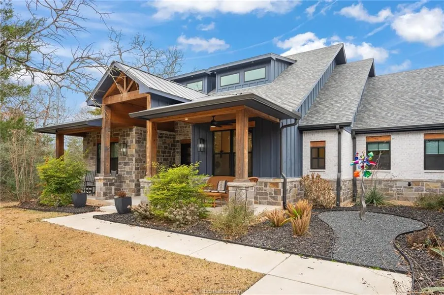 From Wellborn road head south, turn right onto Greens Prairie Trail, then left onto I-GN Road. Continue on, and right before the Saddle Creek entrance turn right onto Stousland Rd. The second entrance to winding creek on your left is Rolling Meadow. House is on the left.