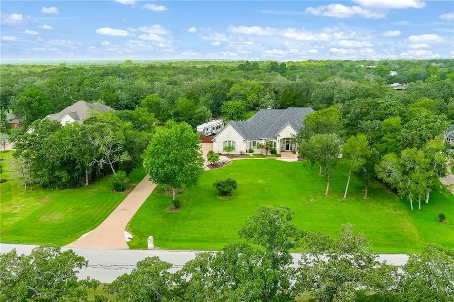 Welcome to your private sanctuary in the desirable Great Oaks neighborhood! This impressive custom estate sits on 1.5 acres of beautifully landscaped grounds, framed by towering native trees and a densely wooded backdrop for the ultimate in privacy. Inside, you ll find two spacious living areas one designed to entertain with a striking custom stone wall and plenty of room to host a crowd; the other offers a more refined, serene atmosphere for relaxed evenings or quiet conversation. With two master suites, two additional bedrooms, soaring ceilings, and floor-to-ceiling windows overlooking the lush backyard, this home offers both comfort and sophistication. The extensively updated interior boasts high-end finishes throughout luxury flooring, granite countertops, custom cabinetry, spa-inspired bathrooms, and a fully updated kitchen featuring premium appliances, such as a Wolf double oven and Wolf gas cooktop. Step outside to your resort-style pool recently resurfaced with a pool heater - surrounded by a fully equipped outdoor kitchen with stainless cabinets, built-in grill, and sink. A 2+ car garage includes a separate bay for your golf cart or gear, plus discreet RV parking. Trane variable-speed HVAC installed in 2022 ensures year-round comfort and efficiency. Luxury, privacy, and space this is luxury living at its finest. Conveniently located less than four miles from the Texas A&M campus! Ask for the list of features and upgrades as well as items for sale with the property.
