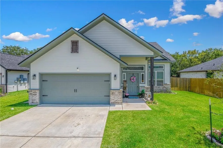 The Warwick in Sage Meadow is a beautiful 3-bedroom, 3.5-bathroom home with a 2-car garage, nestled in a desirable neighborhood in Bryan that’s just 3 years old. Backing up to peaceful green space, this open-concept home offers a spacious living room, dining area, and kitchen with granite countertops, stainless steel appliances, custom cabinets, and a large peninsula with plenty of storage. The primary suite is conveniently located downstairs with an ensuite featuring a separate tub, walk-in shower, double granite vanities, and a private toilet room. Upstairs, you’ll find two more bedrooms, each with its own bathroom, plus a versatile space perfect for an office or play area. The main floor includes luxury vinyl plank flooring, while the bedrooms are carpeted and the bathrooms feature beautiful tile. With two closets on the main level and additional storage upstairs, you’ll never be short on space. Outside, enjoy a covered back porch, sprinkler systems in both the front and back yards, and a serene setting next to the green space.