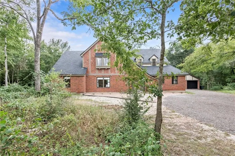 Discover refined living in this exquisite Tudor-style residence, elegantly poised on a secluded wooded acreage in the heart of College Station. This meticulously remodeled, 3,725 square foot home boasts four spacious bedrooms and three baths. You will also find an additional 400 square feet of detached, updated flex space with a half bath attached to the garage.
