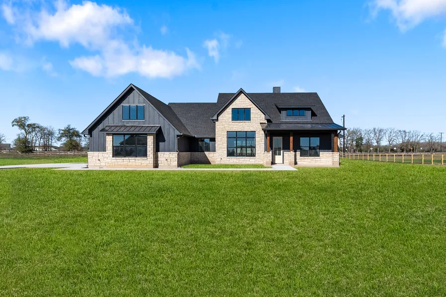 Crafted by Rafter 12 Custom Homes and set on over an acre in Reliance Ridge, this new home is designed to stand out. The exterior pairs rich stone with dark siding for a dramatic presence, while the interior brings volume and light with soaring ceilings, expansive windows, and a stone fireplace that anchors the living space. The kitchen is equally striking, featuring an oversized island, custom cabinetry, and curated finishes that elevate everyday living. A pocket office offers a private space for work or study, while the owner’s suite provides a retreat with a walk-in closet and a spa-inspired bath. Secondary bedrooms and baths add flexibility for family or guests. Outdoors, a covered patio invites gatherings in a peaceful setting, while full gutters and spray foam insulation enhance efficiency and comfort. With bold design, acreage, and craftsmanship, this Reliance Ridge home delivers ...